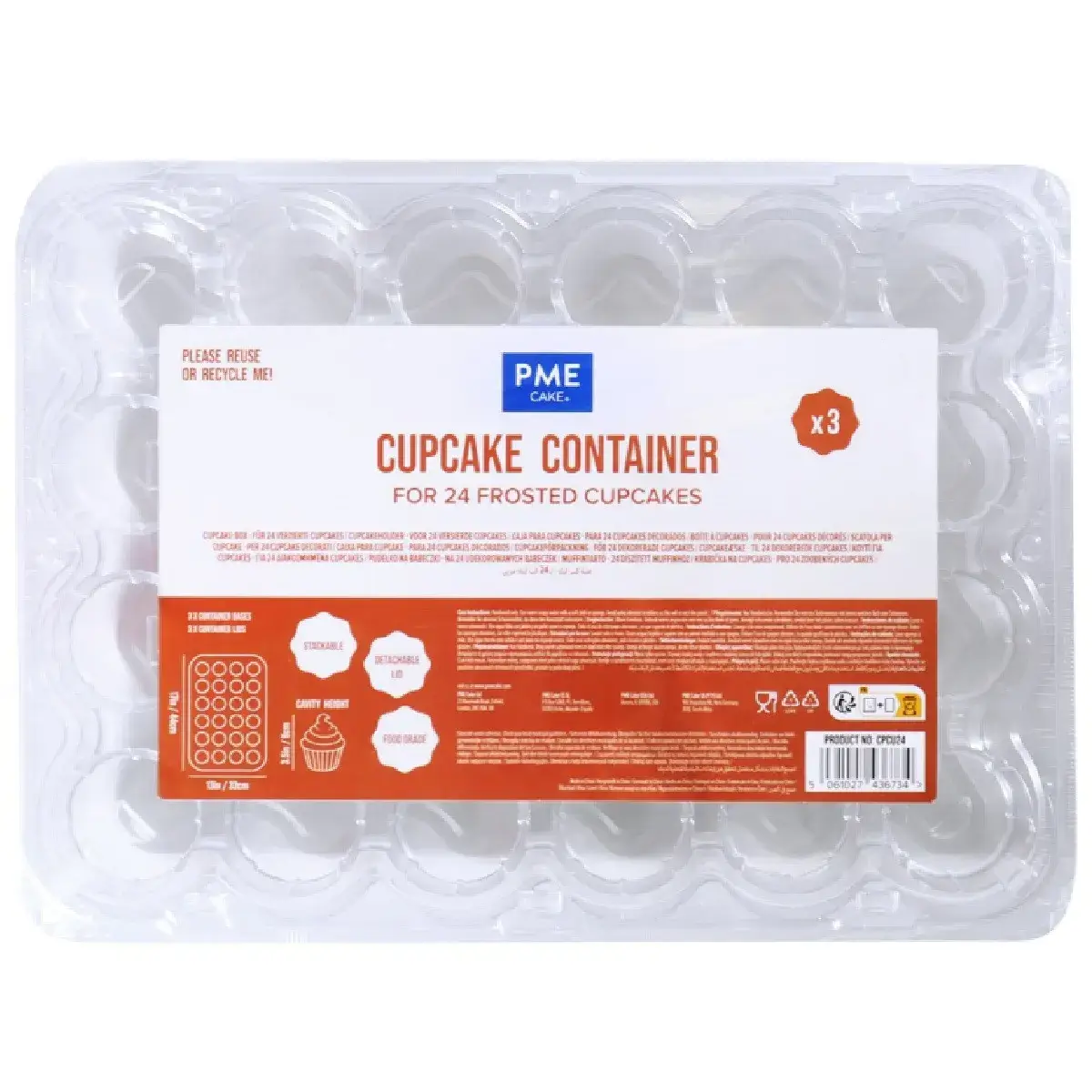Deze stevige transparante houders hebben ruimte voor 24 Cupcakes en worden geleverd in een set van 3 stuks.
